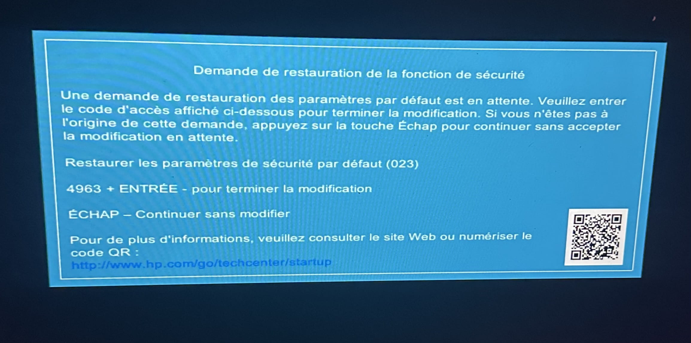 Le reste des messages sont des alertes du Bios et/ou des gadgets HP dont personne n'oblige à se servir.