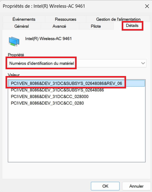 Poste tout de même le Numéro d'identification du matériel de l'Intel wireless.