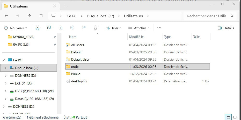 Si j'explore mon disque via Ce PC ou ce que je veux j'aurai "Utilisateurs" quel que soit le dossier.
