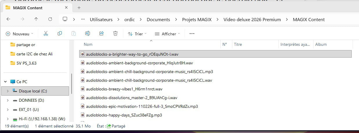 Prenons l'exemple d'un contenu audio que j'ai téléchargé depusi Magix-Hub récemment et qui s'appelle "audioblocks-a-brighter-way-to-go_rOEquNOt-l.wav".