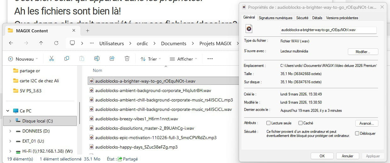 C'est bien l'info donnée le 6/3/2026 sur le site Magix par Sasiuk, donc il faut bien fouiller les branches de l'arborescence de ce pc pour trouver MAGIX\ et la suite