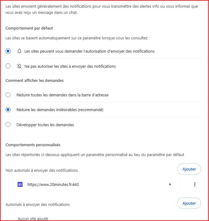 Bloquer les sites qui vous dérangent ou désactiver les demandes d'autorisations.