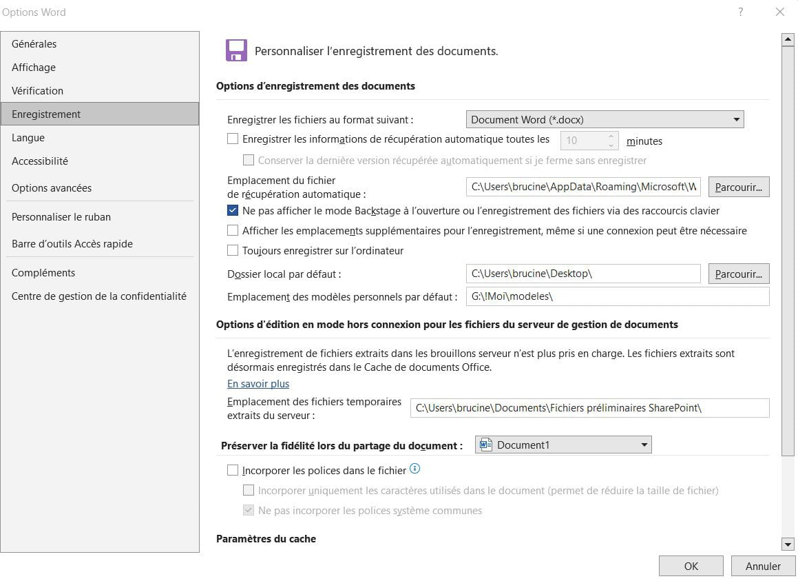 Je n'utilise pas OneDrive, je ne sais pas si dans ce cas le choix d'un dossier d'enregistrement par défaut dans Word comme je l'ai illustré est opérant.