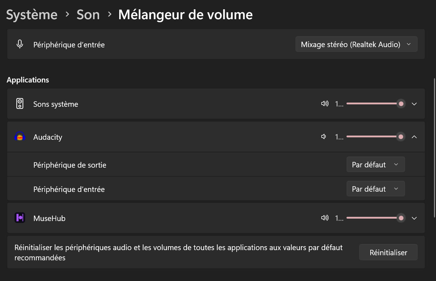 Mon pc tourne sous Windows 11 Famille, version 25H2. J'utilise Audacity 3.7.6, téléchargé sur le Microsoft Store. Ce n'est pas la dernière version mais tout marchait très bien jusqu'à hier. Le flux son ne passe plus (voir photo en pj). J'ai vérifié tous les paramètres de configuration, tout me semble ok. Mais ça ne marche pas...