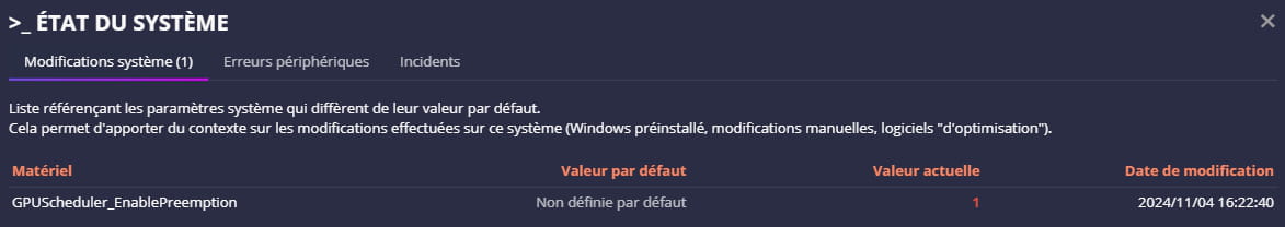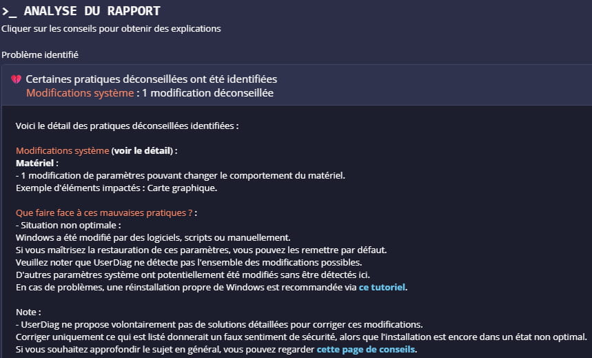 Résultat diagnostic UserDiag :