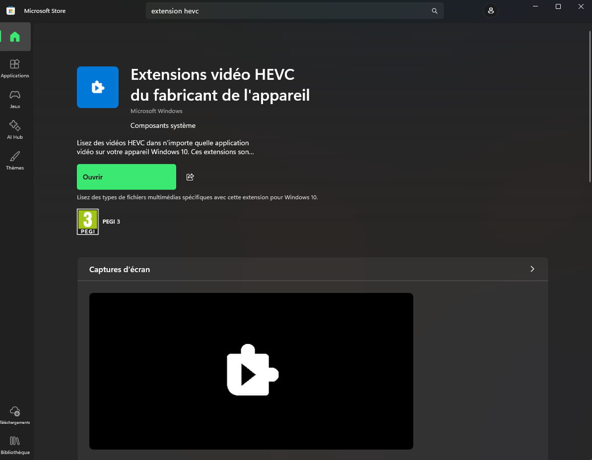 L'auteur semble utiliser Windows 7: il n'y a donc pas d'application Photos mais la Visionneuse Photos Windows 7, et pas de Microsoft Store non plus (et sans doute pas de possibilité, qui n'a pas été évoquée, de télécharger le Codec approprié comme sous Windows 10 et 11).