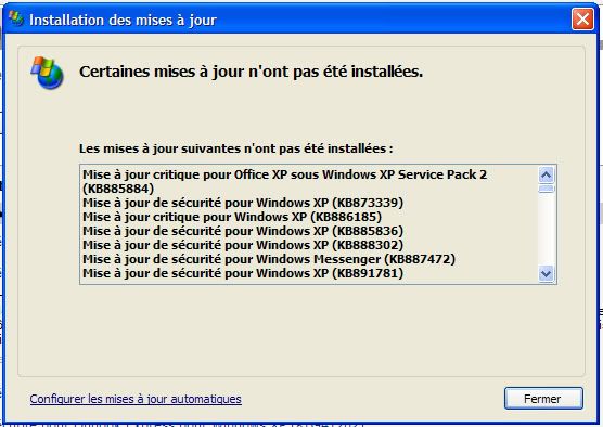 Quand je clique sur 'installer les mises à jour', ça essaie de les installer, et puis au bout d'un long moment, une fenêtre apparait et liste toutes les mises à jour non installées (c'est-à dire toutes).