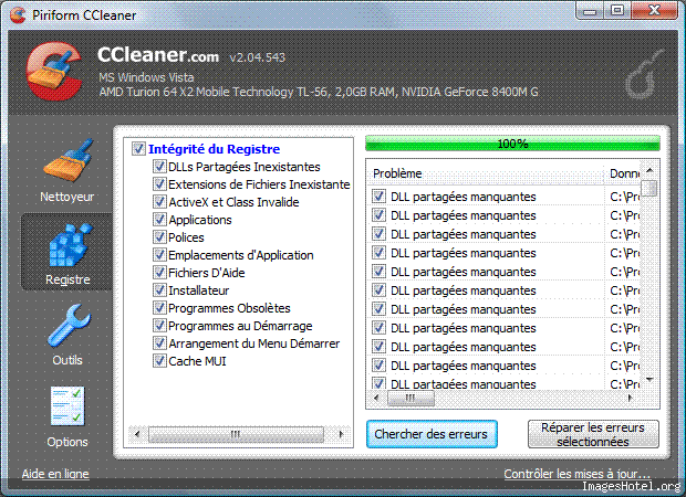 J'ai téléchargé Piriform CCleaner je cherche les erreurs du registre ???