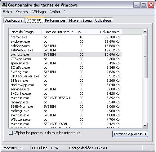 depuis quelque temps l'utilisation mémoire de mes processus est extrêmement élevée comme l'indique cette capture d'écran: