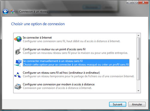 -Se connecter manuellement à un réseau sans fil