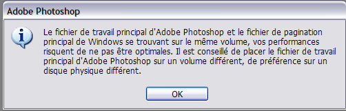Je viens d'installer Photoshop sur mon disc C:, et quand j'ai ouvert mon logiciel, il m'a mis ce message :