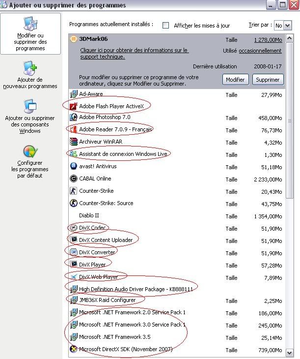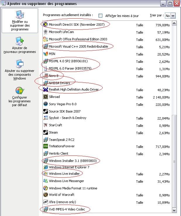J'aimerais savoir si tout mes programmes (que j'ai encerclés) sont utiles à mon PC, ou bien même nuisible!