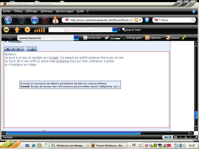 au bout de 5 min enfin j'y arrive mais probleme tout sur mon ordinateur a grossi