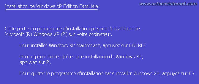 - Relance alors ton PC avec le CDRom Windows déjà dans le lecteur => Windows Install se lance normalement (sinon regarde plus bas : "NB").