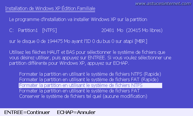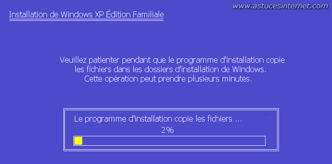 - Il s'en suit l'installation de Windows. Laisse toi alors guidé par l'assistant.