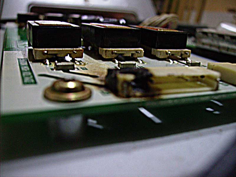 J'ai regarder en dessous de la plaque verte et il n'y a aucune trace de brulure ailleurs que sur la gauche de la petite prise blanche ne plastique blanc qui se trouve au dessus de la plaque verte. (désolé je ne conné pas le nom de ses plaques sur lesquelles on y fixe les composants électroniques).