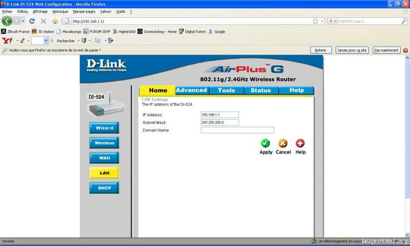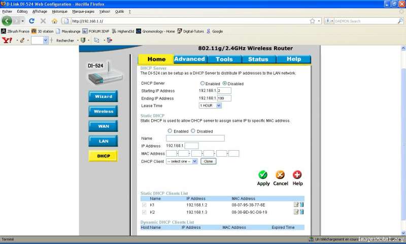Router: D-link 802.11g Dl-524 - IP 192.168.1.1